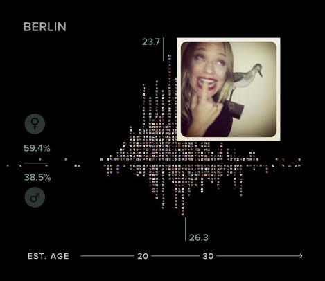 In every city we analyzed, there are significantly more women selfies than men selfies (from 1.3 times as many in Bangkok to 1.9 times more in Berlin). Moscow is a strong outlier - here, we have 4.6 times more female than male selfies!